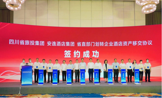 省國資委黨委委員、副主任、一級巡視員任興文,財政廳二級巡視員黃永昶,中共四川省委老干部局副局長王萍,商務廳黨組成員、機關黨委書記尹奇志,省經濟合作局黨組成員、副局長方青,文化和旅游廳二級巡視員王彥勛,審計廳二級巡視員張毅,省就業服務管理局局長王祎,省糧食和儲備局黨組成員、副局長周光林共同見證簽約。集團黨委副書記、副董事長、總經理,安逸酒店集團黨委書記、董事長周曉陽主持會議。