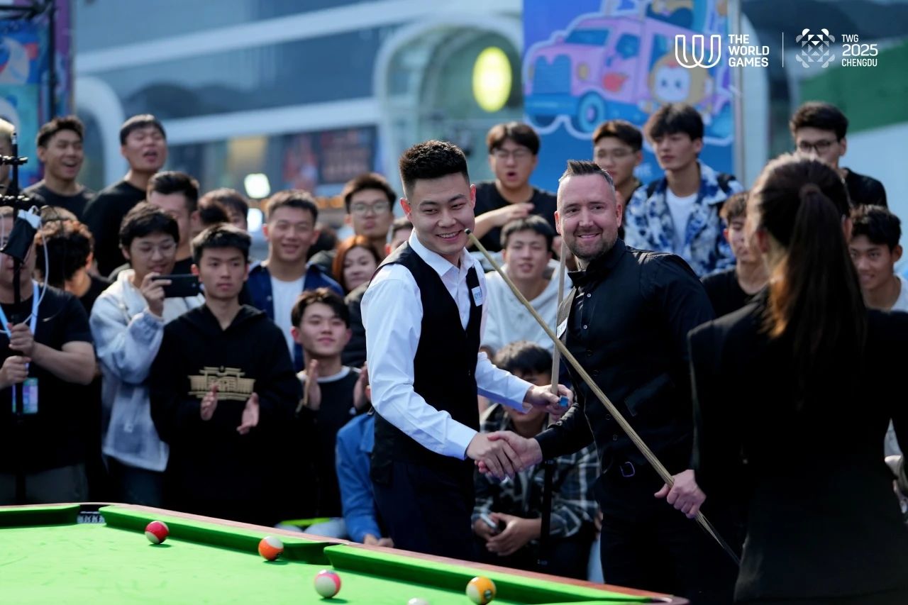 啟動儀式九大環節全方位展現了“賽事+”文旅、科技、產業的融合發展。賽事搭臺,邀請臺球世界冠軍(英式8球)加雷斯·波茨、中國冠軍張堃鵬現場表演,展示世運臺球項目魅力;文旅唱戲,以“跟著賽事去旅行”為主題,推出世運“賽事+旅游”精品路線,在去哪兒APP網站設置“跟著賽事去旅行”主題展館,展示推介四川及成都的文化旅游資源和活動;科技賦能,將虛擬技術、移動穿戴設備、數字科技等元素融入世運項目推廣和體驗活動,讓現場市民能參與、可體驗,充分感知世運競賽項目;營城興業,世運臺球比賽項目Heyball(中式8球)大師賽2025年全球總決賽落戶成都達成意向,喬氏集團、中國電信等積極參與共辦共享“跟著賽事去旅行”系列活動,助力成都世界賽事名城建設。
