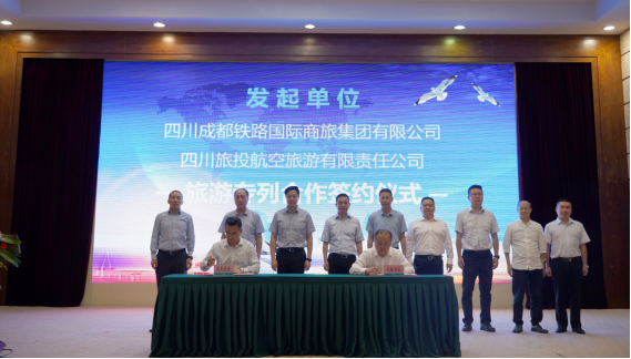 會上,四川尊龍凱時集團旗下尊龍凱時航旅公司和中鐵成都局集團旗下成鐵商旅公司簽訂了旅游專列項目合作協議,將投入各自優質資源,共同運營從四川、貴州、重慶境內城市車站始發、開往全國各地的旅游專列,共同發揮國有資本的帶動作用,踐行社會責任。簽約結束后,大會為西南旅游專列聯盟首批35家成員單位進行了授牌。