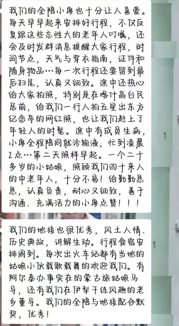 在旅程結束的歡送會上,不少游客已經迫不及待地詢問下次行程。“十五個日夜的新疆之旅在歡聲笑語中圓滿落幕,特別感恩熊貓專列7團家人們的一路相伴,感謝7團專屬管家和導游,從行程規劃到貼心關懷,你們始終用專業和真誠為我們打造了一場完美的旅行體驗。為‘安逸號’熊貓專列的優質服務點贊喝彩!期待再次相見!”
